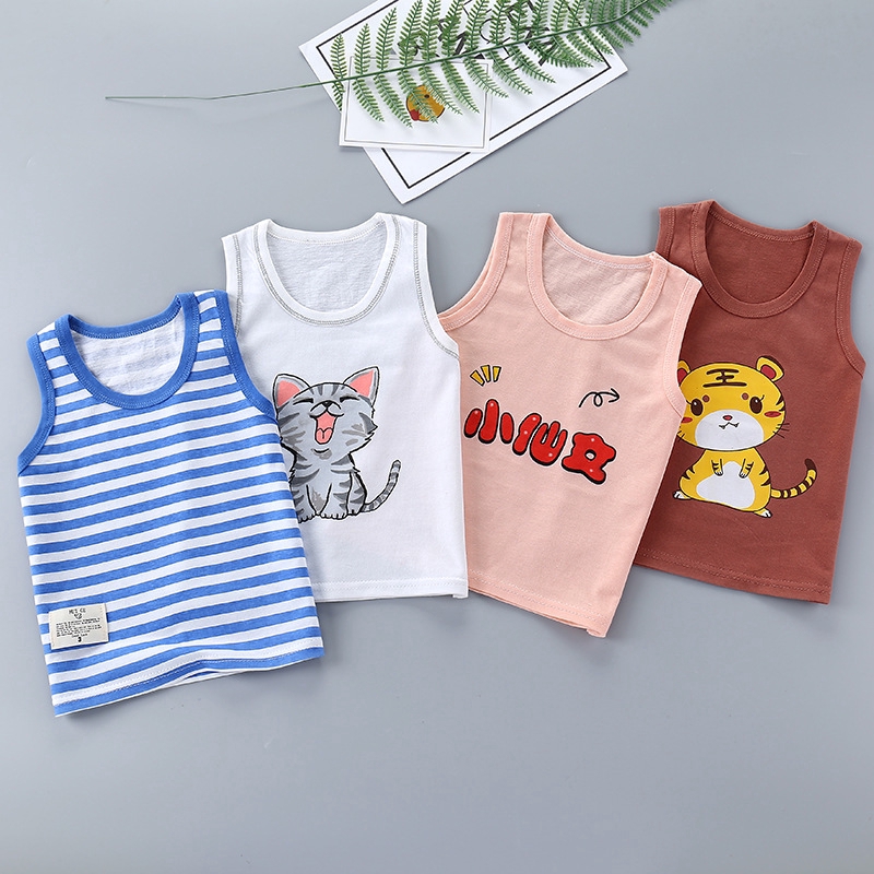 Children Vest Cotton Cartoon Sleeveless Top Baby Boy Girl Vest