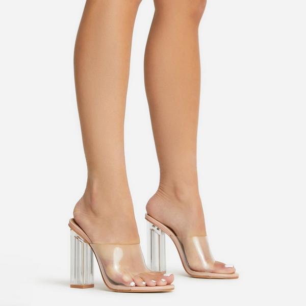 Fusion Peep Toe Perspex Block Clear Heel Mule In Nude Patent EGO