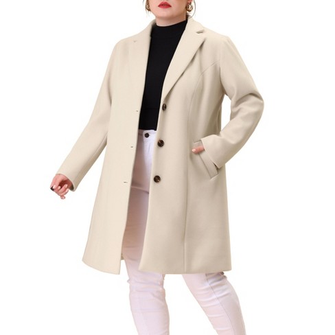 Agnes Orinda Women s Plus Size Winter Notched Lapel Single Breasted Pea Coat Cream White 2X