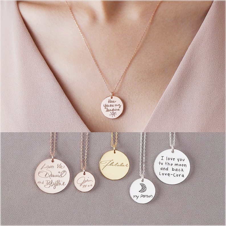 Customized engraved necklace 2025, CUSTOM handwriting round necklace sterling silver engraved 2025