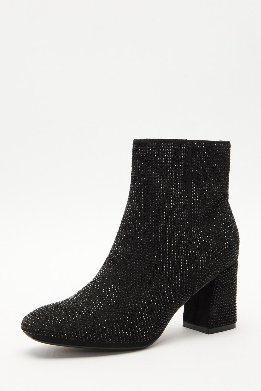 Black Diamante Heeled Ankle Boots Quiz Clothing