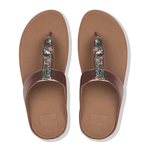 Fitflop Fino Scallop Twist Rose Gold Leather Toe Post Sandals in