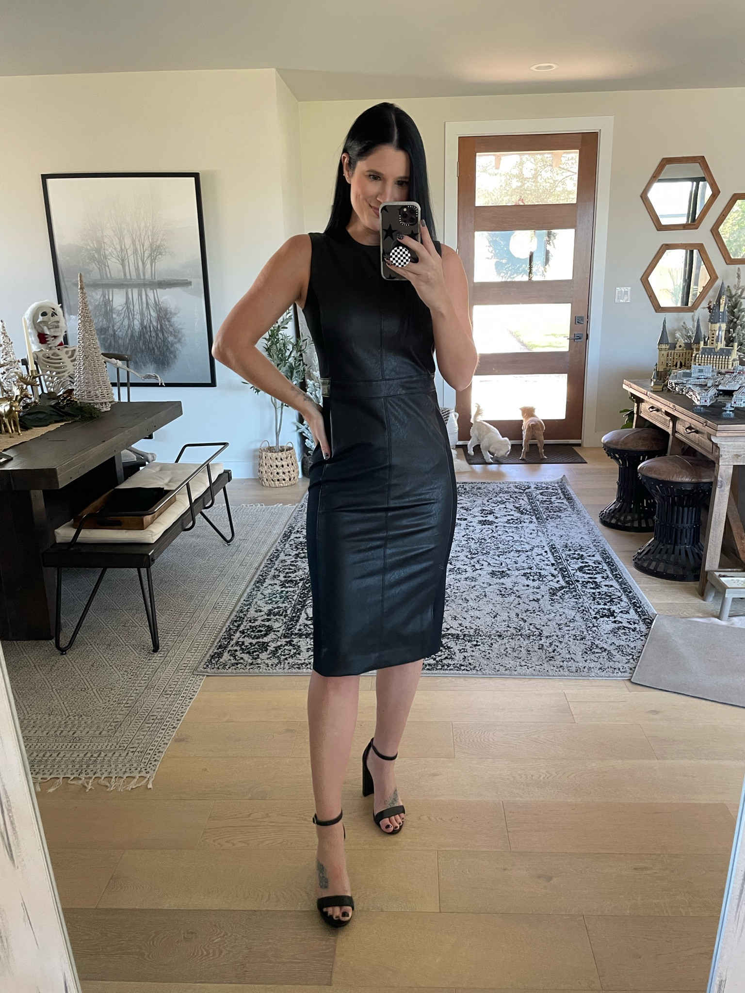 - fitted leather dress