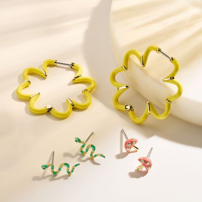 Fossil X Smiley Gold Tone Stainless Steel Stud Earrings