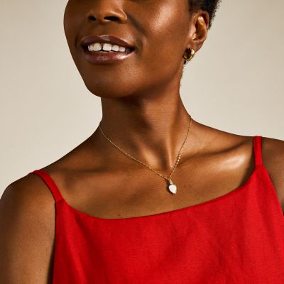 Fossil womens necklace 2025, Drew Heart Rose Gold Tone Stainless Steel Necklace JF03081791 2025