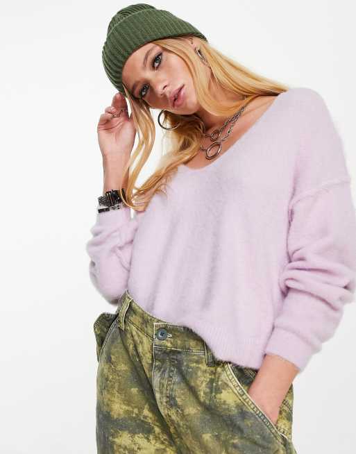 Free People Princess Pullover mit V Ausschnitt in Flieder