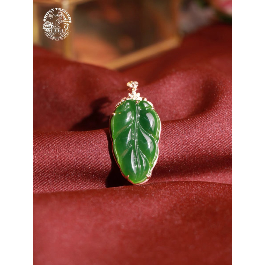 Hetian Jade Jasper Hand Carved Leaf Pendant Big Industry Gets