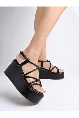 Buy SHOETOPIA Shoetopia Multi Straps Casual Black Flatforms For