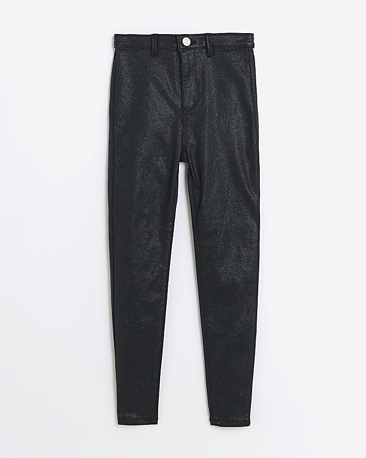 Girls black skinny glitter coated jeans River Island