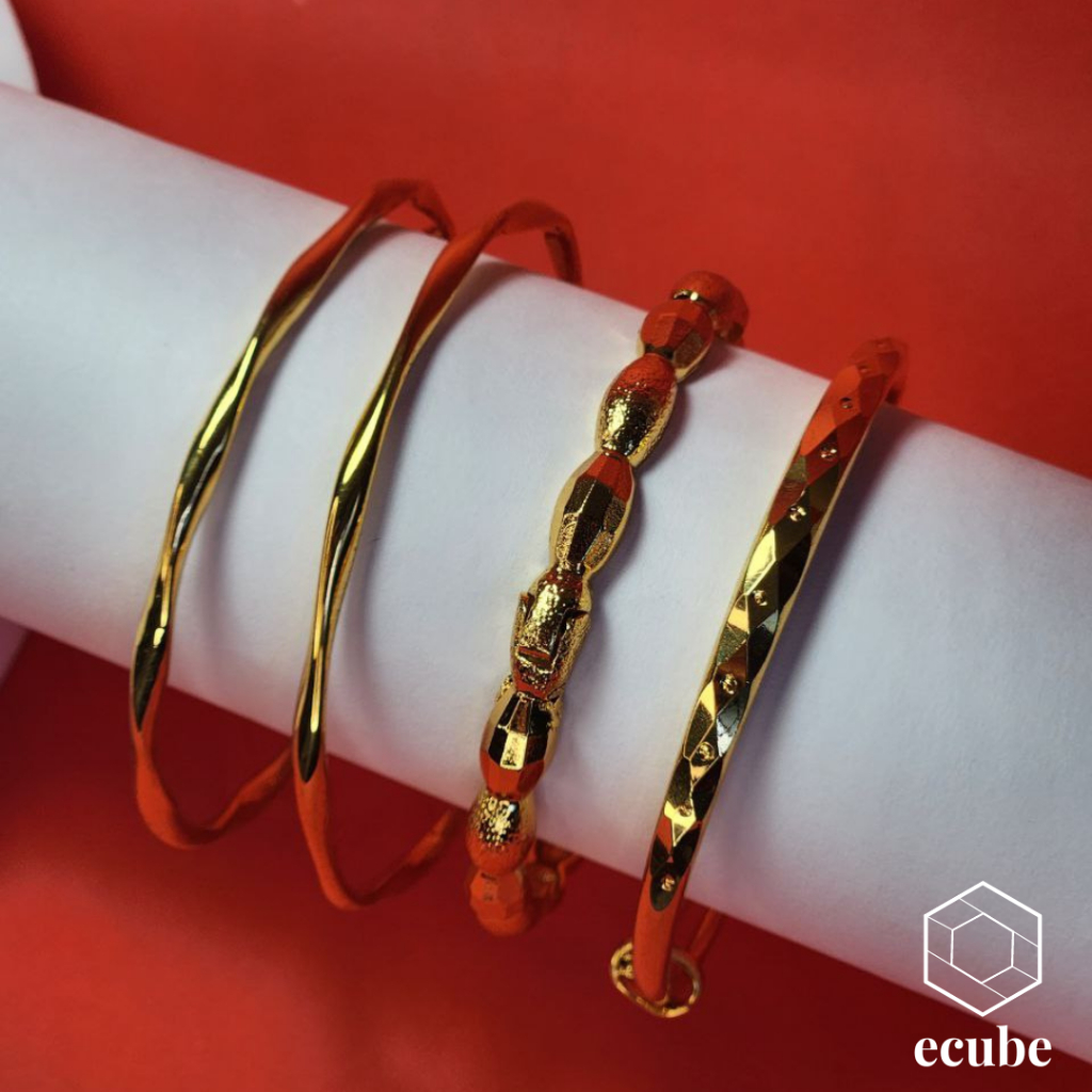 SG ECUBE Gold plated Clover Bangle Designer Gold bangles for