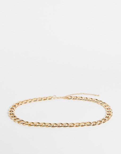 Gold chain belt asos 2025, ASOS DESIGN chunky curb chain belt in gold tone 2025