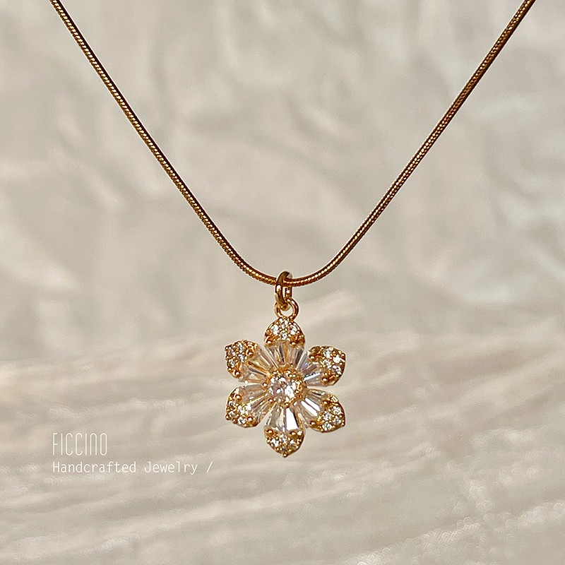 FICCINO 18k Gold Plated Titanium Steel Flower Pendant Necklace