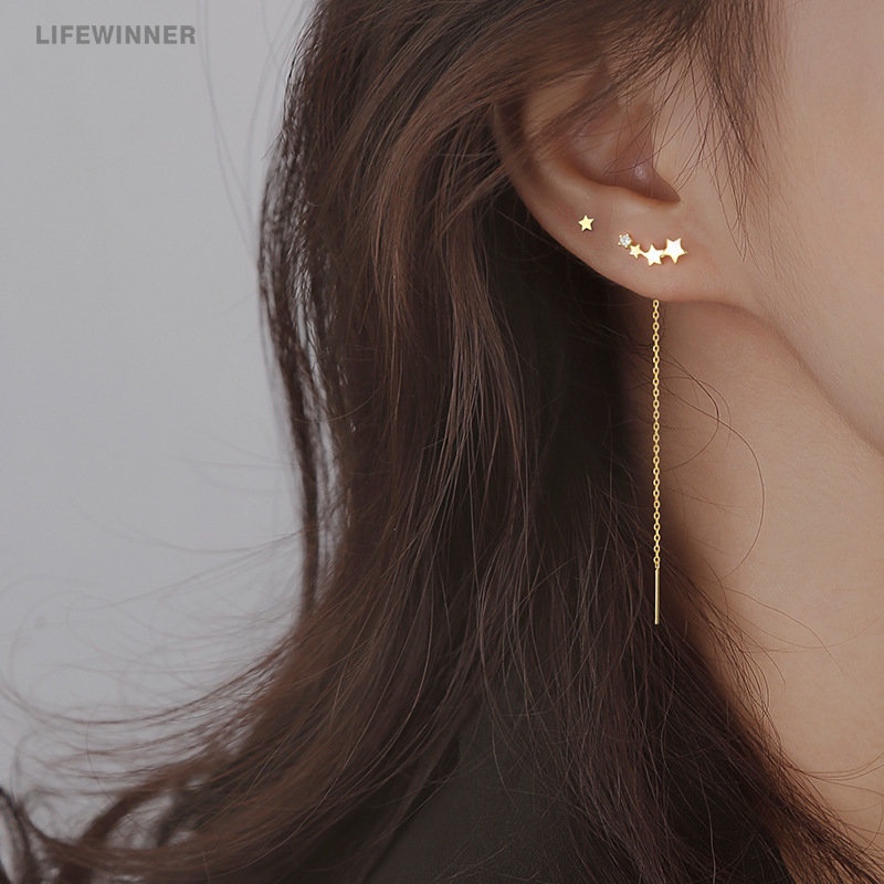Gold and Silver INS Trendy Cute Star Long Earrings Tassel Chain