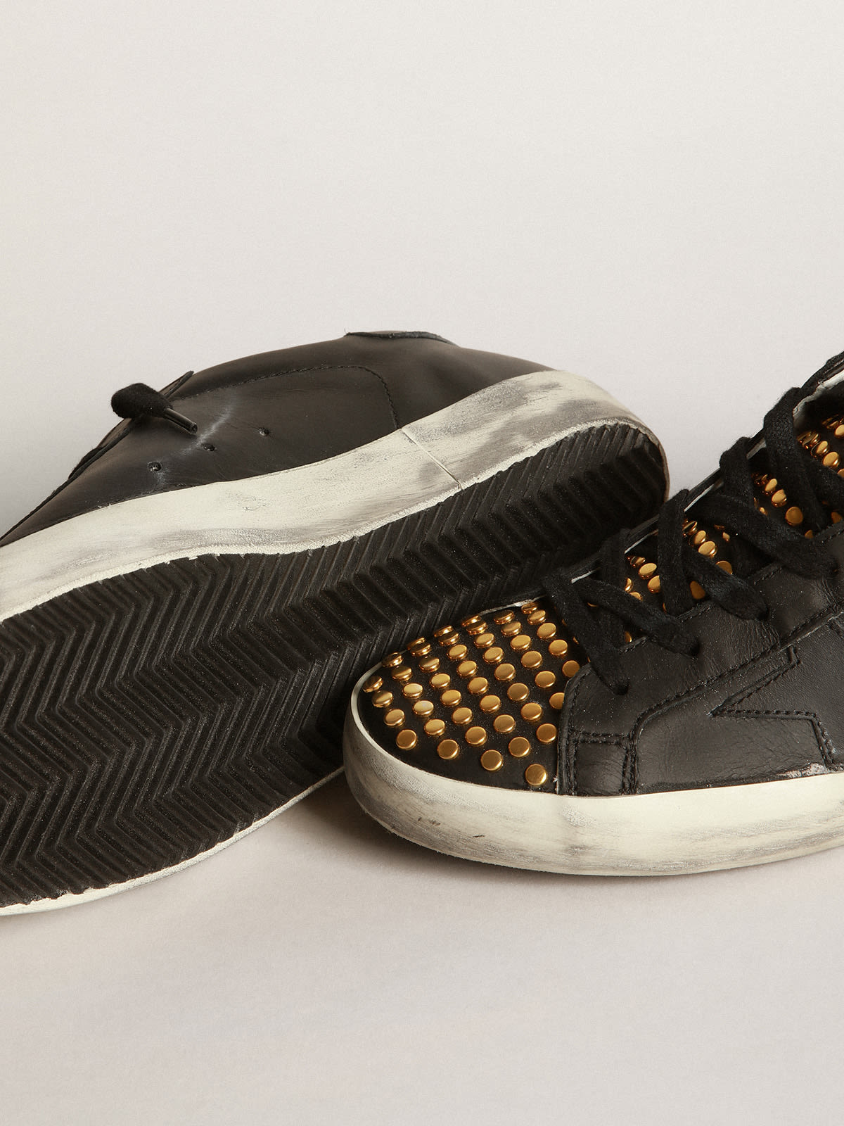 Super Star LTD sneakers in black leather with tongue with gold studs