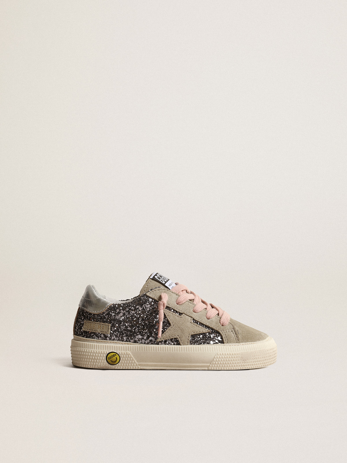 Golden Goose Kids May Leather Glitter Trainers White Peach Pink Fluo