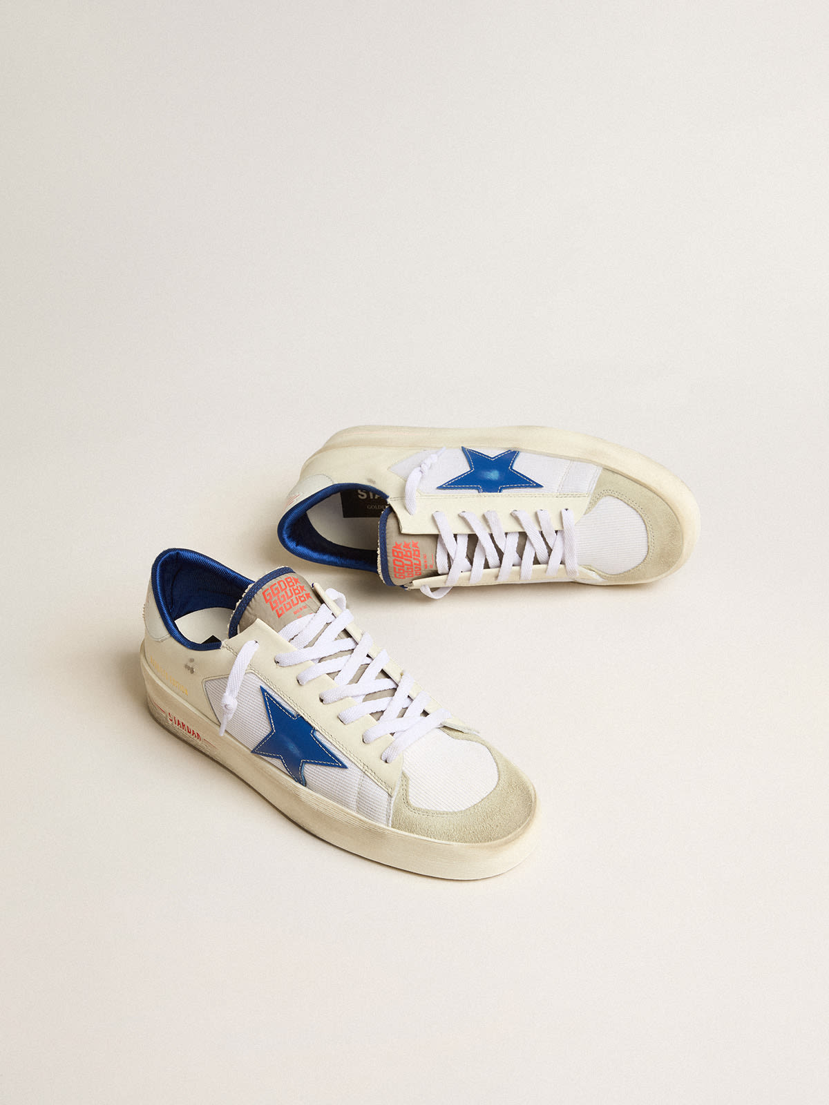 Golden goose white and blue 2025, Stardan LTD in white mesh and leather with blue star and white heel tab 2025