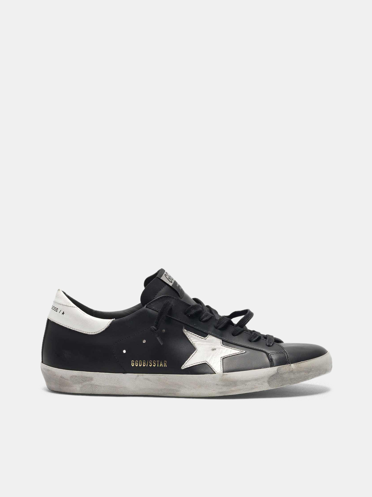 Golden goose white black 2025, Black Super Star sneakers in leather with white star Golden Goose 2025