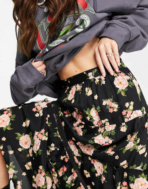 ASOS DESIGN Gonna lunga a fiori con inserto in pizzo ASOS