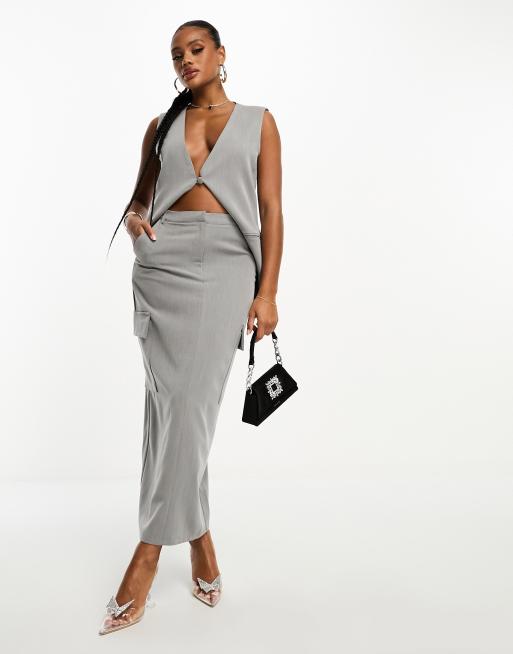 Kaiia Gonna lunga sartoriale con tasche grigia in coordinato
