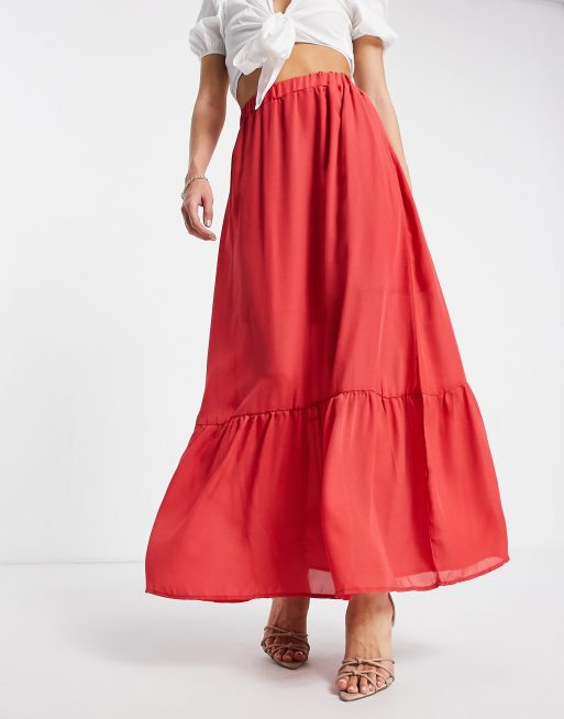 Gonna lunga con volant 2025, In The Style Gonna lunga rossa con volant sul fondo 2025