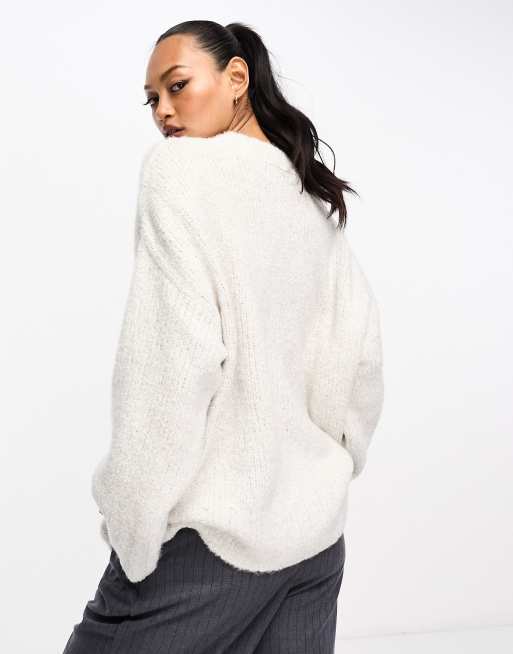 Grey fur jumper 2025, ASOS DESIGN high v neck jumper in textured yarn in grey 2025
