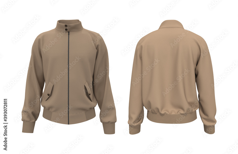 Harrington jacket mockup 2025, Harrington jacket mockup front and back views 3d illustration 3d 2025