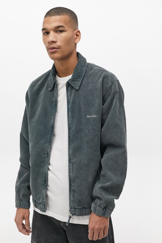 iets frans Harringtonjacke aus Cord in Blaugr n mit Acid Waschung
