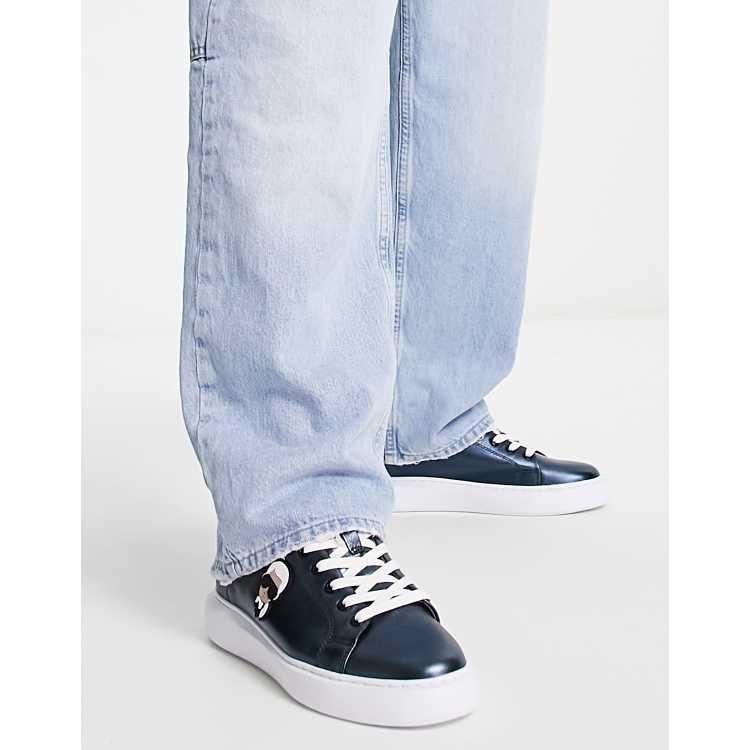 Karl lagerfeld navy shoes 2025, Karl Lagerfeld Paris Suede Leather Contrast Sole Sneakers Blue 2025