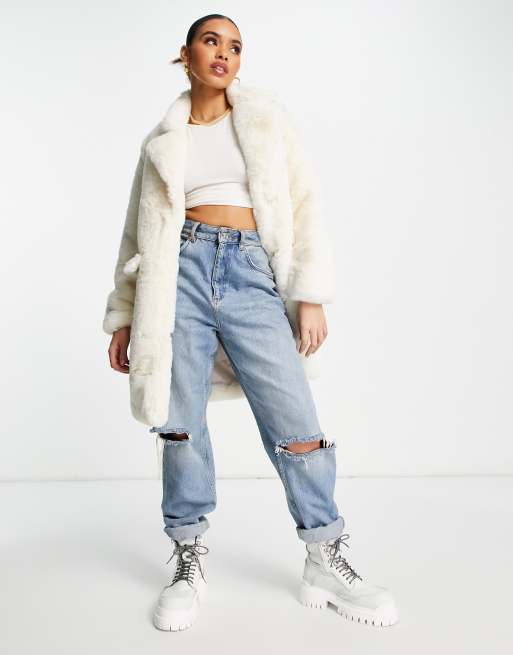 Kendall and kylie faux fur coat 2025, Kendall Kylie faux fur pea coat in cream 2025