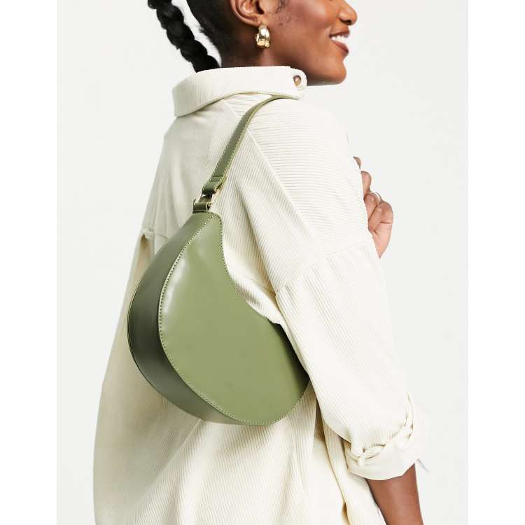 ASOS DESIGN curved shoulder bag with long strap in khaki