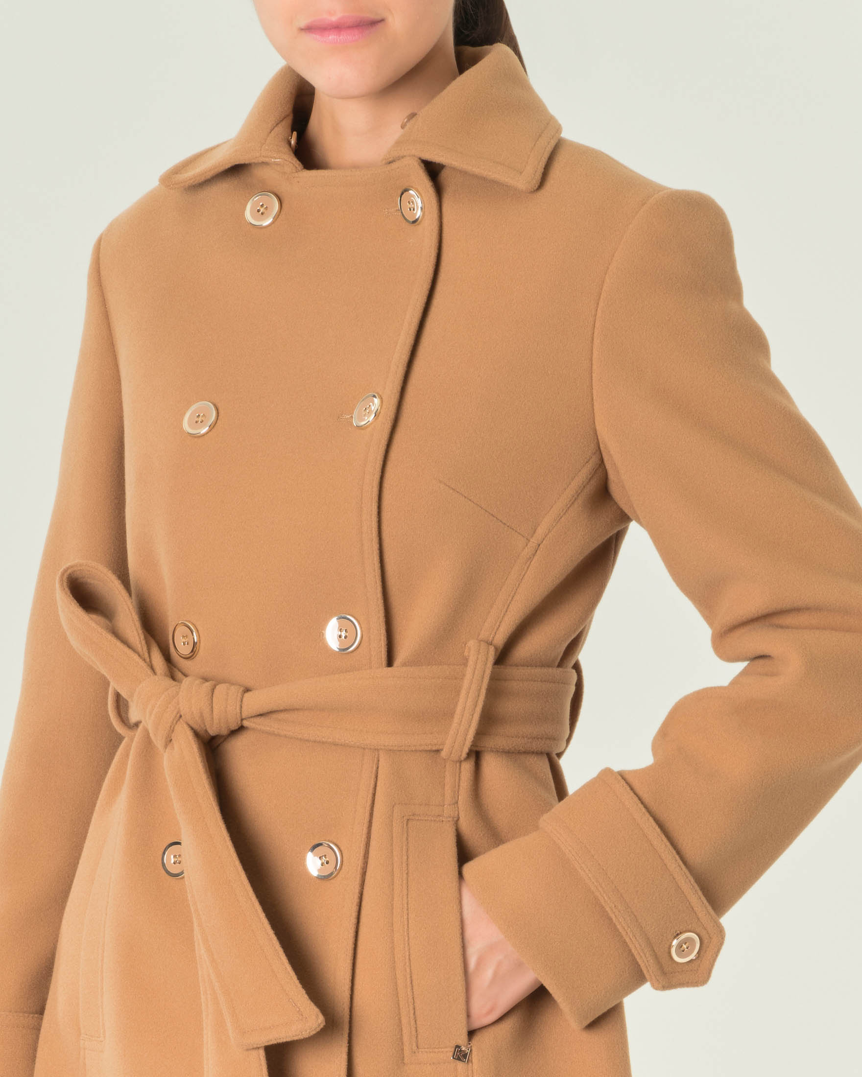 ECRUECO DOUBLE BREASTED COAT WITH BELT Woman Camel