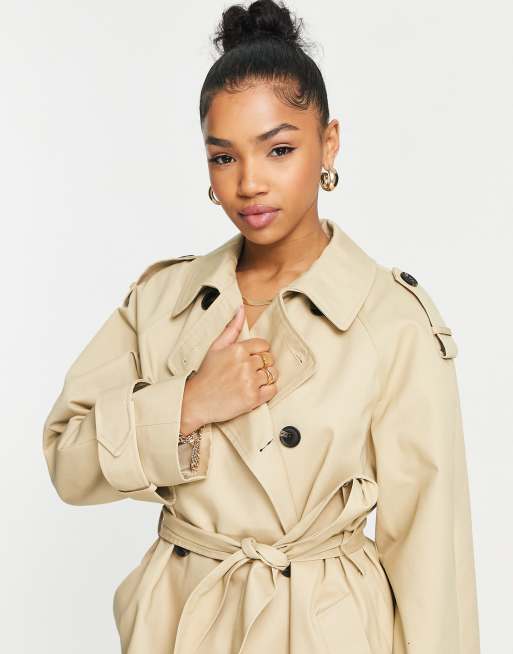 ASOS DESIGN Lang geschnittener Trenchcoat in Stein