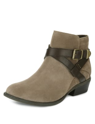 Suede Wide Fit Strap Ankle Boots Footglove M S