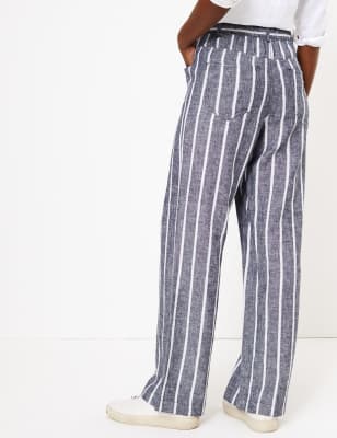 Linen Drawstring Wide Leg Trousers M S Collection M S