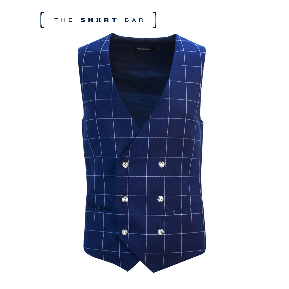 The Shirt Bar Men s Blue Checks Tailored Fit Double Breasted Vest