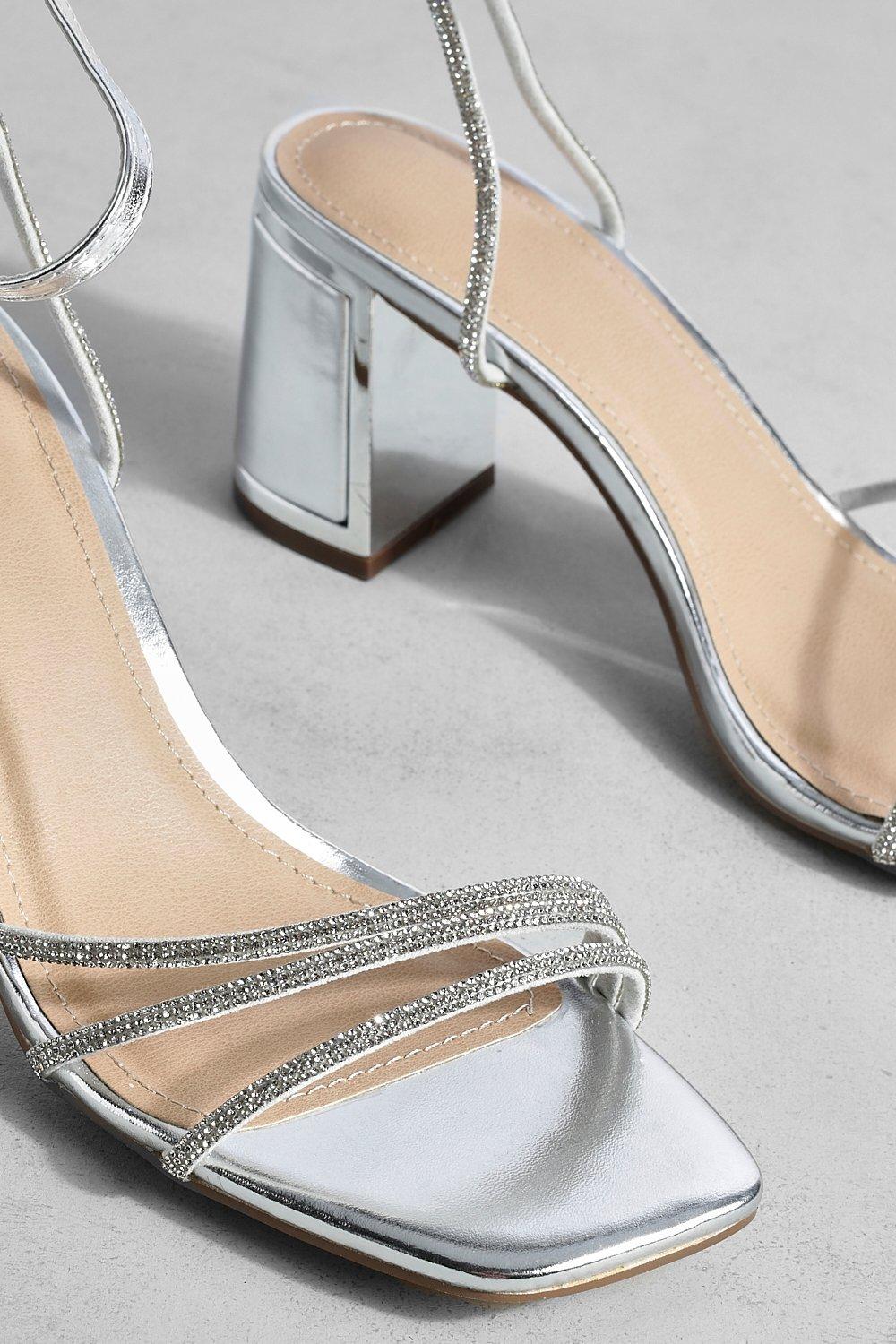 Metallic silver block heels 2025, Metallic Embellished Low 2 Part Block Heel Sandals 2025