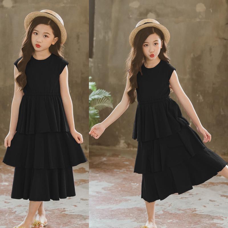 Ready Toddler Girls Summer Dresses Maxi Long Ruffles Black Princess Dress Girl Sleeveless School Teenage Children Clothing Fashion
