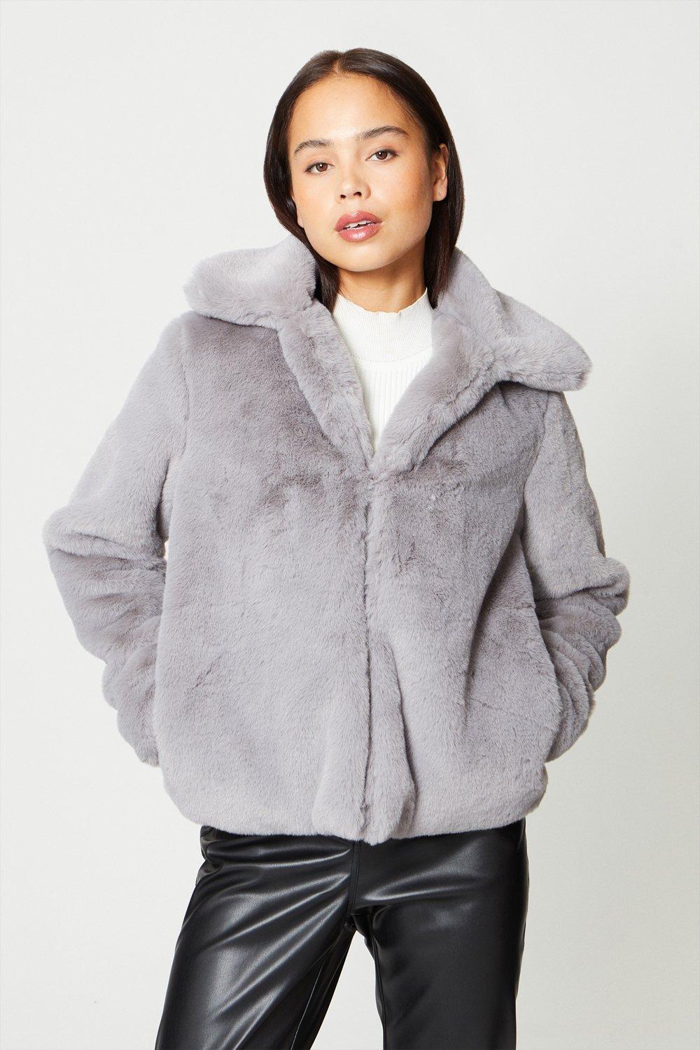 Jackets Coats Petite Plush Faux Fur Short Collared Coat Oasis