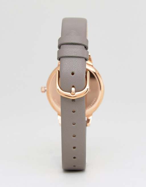 Olivia Burton OB16EG67 Enchanted Garden London Leather Watch In Grey Rose Gold