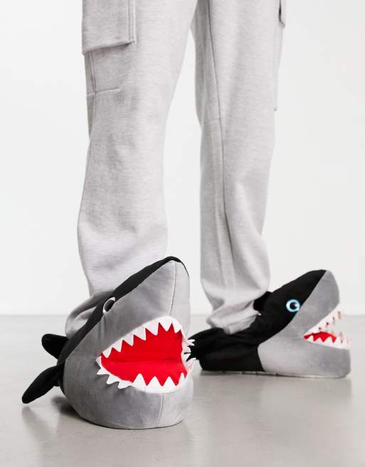 Loungeable shark slippers in dark grey