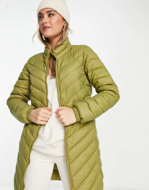 Only tahoe quilted midi coat in green