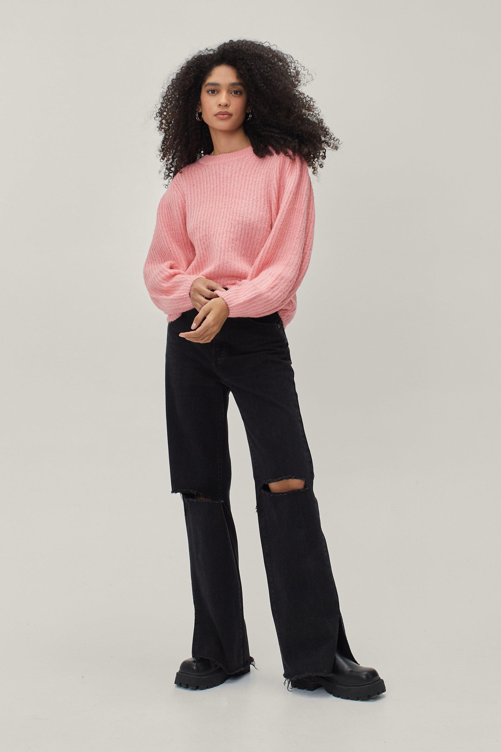 Pink puff sleeve sweater 2025, Knitted Puff Sleeve Jumper 2025