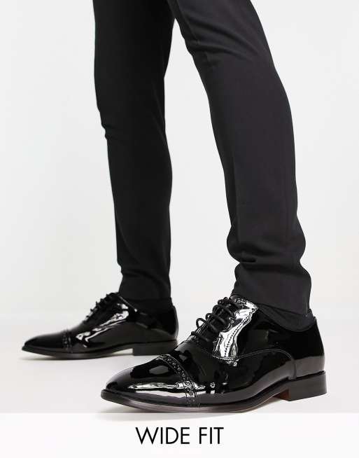 River Island Wide Fit Budapester in schwarzer Lackoptik mit Zehenkappe weite Passform