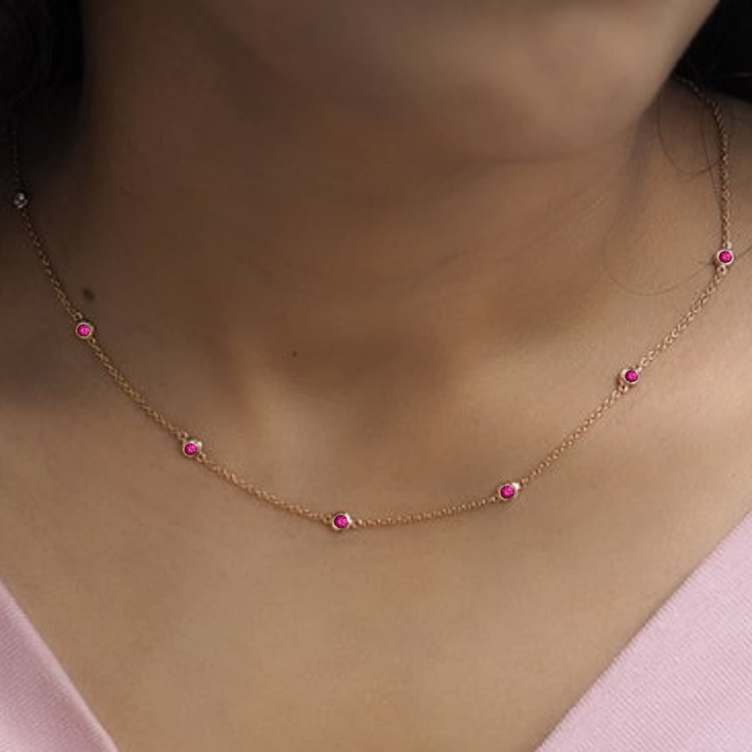 Ruby Necklace 14K Solid Yellow Gold Ruby Station Necklace