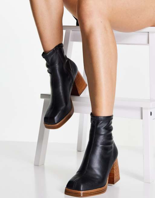Adelina Square Toe Block Heeled Sock Ankle Boots