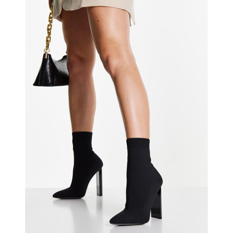 ASOS DESIGN Elly block heel sock boots in black knit ASOS