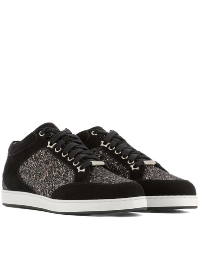 Jimmy Choo Miami Coarse Glitter And Suede Trainers In Bronze Mix
