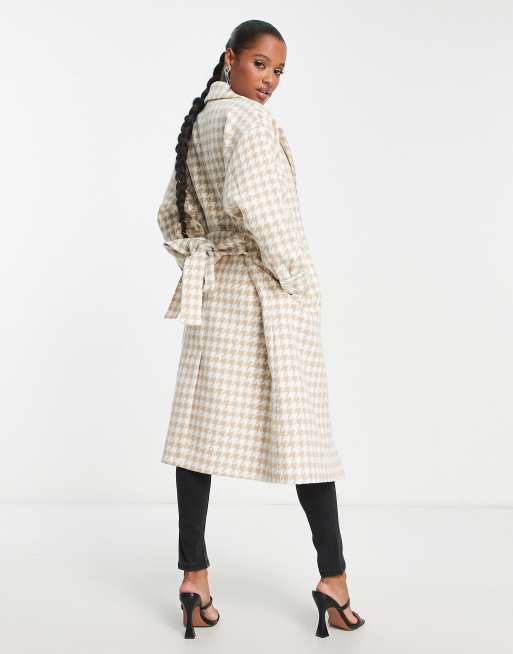 Forever New Petite formal wrap coat in herringbone check ASOS