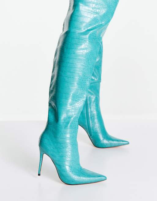 ASOS DESIGN Kayla heeled thigh high boots in teal