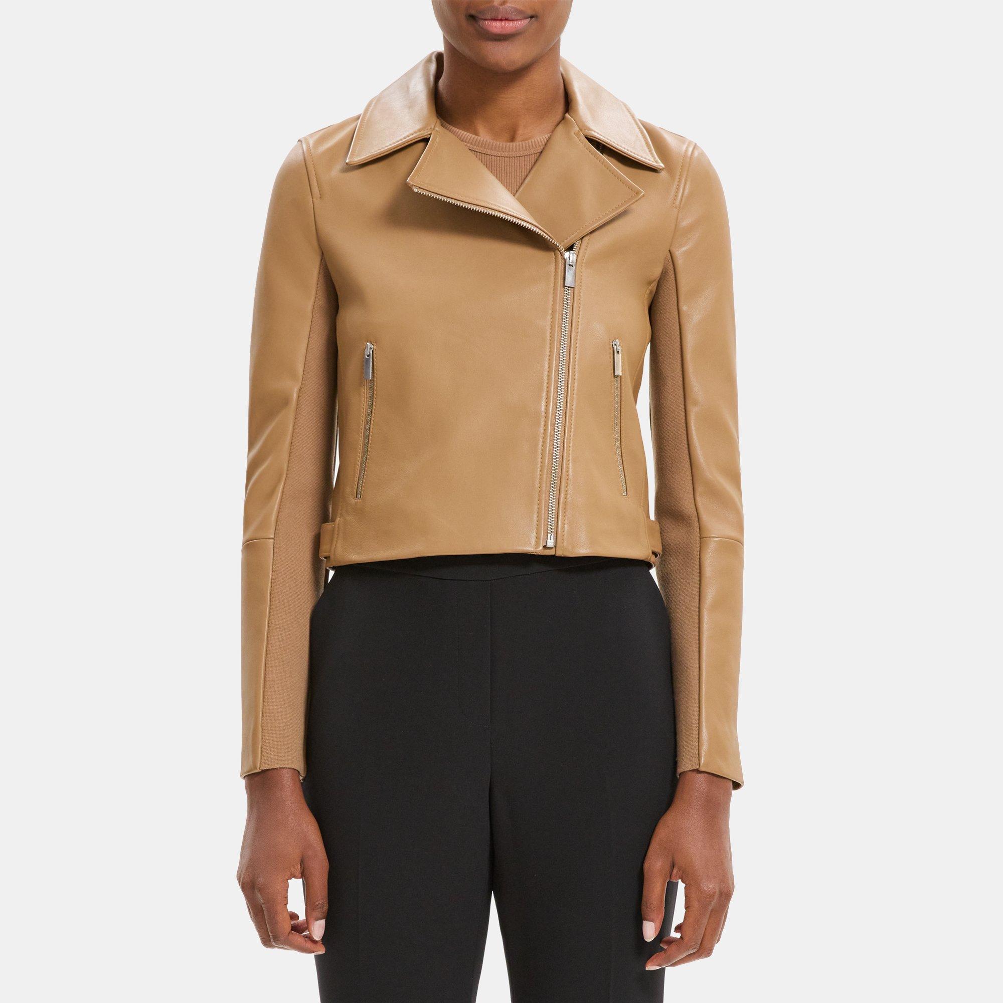 Theory clean leather moto jacket 2025, Leather Casual Moto Jacket Theory Outlet 2025